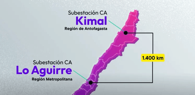 La línea de transmisión unirá María Elena, en la Región de Antofagasta, con Lo Aguirre, en la comuna de Pudahuel, atravesando cinco regiones y 28 comunas. Con una extensión superior a los 1.346 kilómetros, se convertirá en el proyecto de transmisión más extenso de Chile.